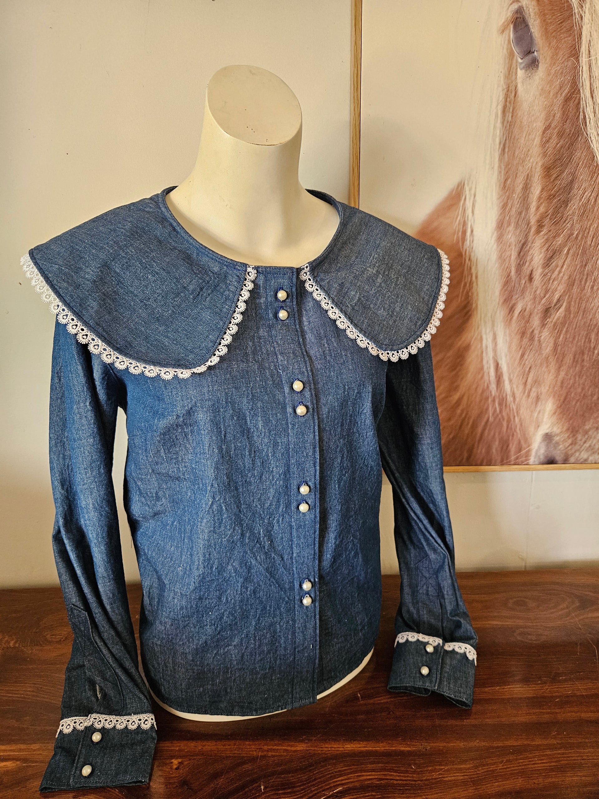 These shirts are handcrafted with such attention to detail. Featuring lace accents on the collar & cuffs, it add just a beautiful level of class. The pearl buttons are just the icing on the cake!This particular style, is more of a blouse fit, so a bit looser through the body than my other shirts, and a little shorter so that they can be worn easily...View more