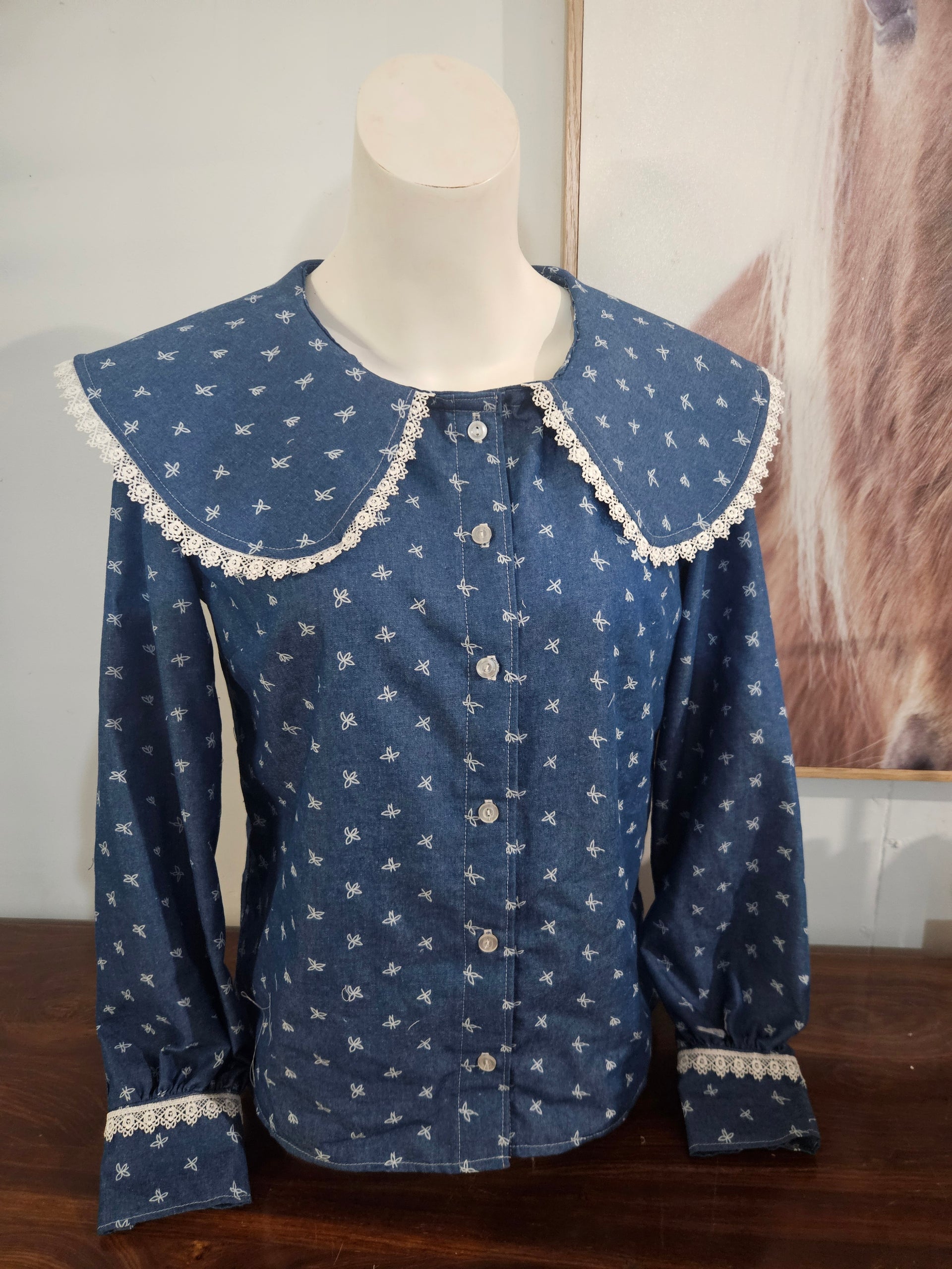 These shirts are handcrafted with such attention to detail. Featuring lace accents on the collar & cuffs, it add just a beautiful level of class. This particular style, is more of a blouse fit, so a bit looser through the body than my other shirts, and a little shorter so that they can be worn easily untucked, or tucked.  PLEASE BE AWARE THESE ARE CUSTOM MADE...View more