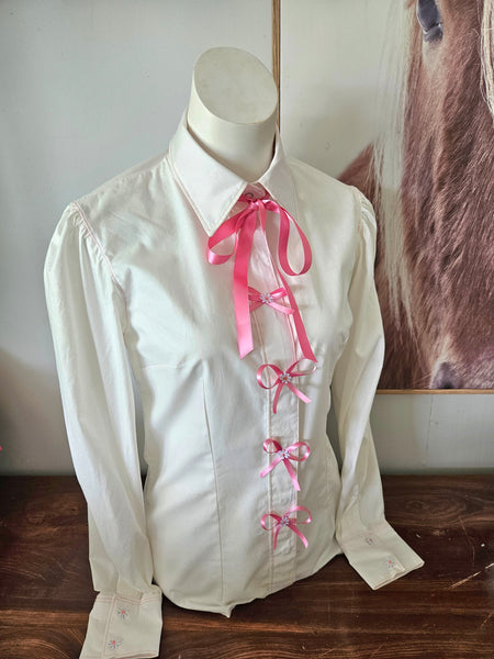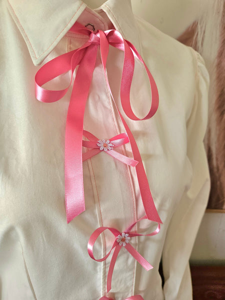 The amount of work, and details that were curated is huge. From the hand made pink bows with the floral centre, hidden buttons down the front to not take away from the bows, perfectly matched cotton to the ribbons - she is a work of art.
