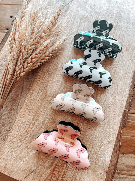 Add some western flair to your style with the Cowboy Boot Hair Claw! Finally, you can wear a boot in your hair! This hair claw is the perfect mix of fashion meets function, with an adorable cowboy boot design that won't only look cute, but also provides a secure hold on your hair. Yeehaw! ðŸ¤