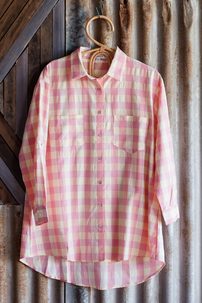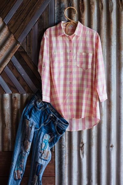 Look amazing in the Lana Pink Check Button Down Blouse! This stylish yet comfortable top is the perfect addition to any wardrobe. With a relaxed fit and classic check pattern, you'll be sure to look and feel great this season. Will you join the Lana revolution?