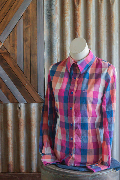 PLEASE BE AWARE THESE ARE CUSTOM MADE TO ORDER - ALLOW UP TO 4 WEEKS FOR THEM TO BE MADE Handmade in Central Qld, Australia. Made with fit & functionality in mind - with extra length through the torso & arms. With darts in the torso & bust for a lovely tailored look & feel. Western style arena shirts available for custom order.  All shirts are...View more