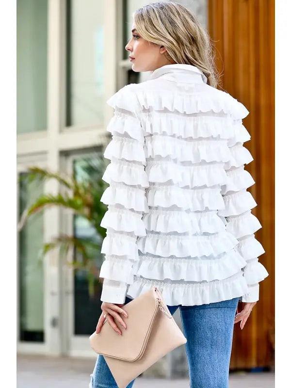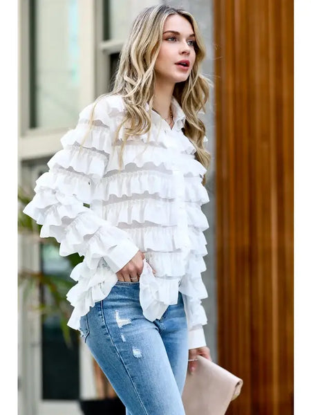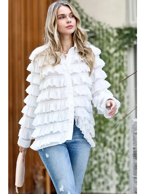 Ruffle details button down cancan blouse shirts -ruffle details cancan blouse -button down -loose fit