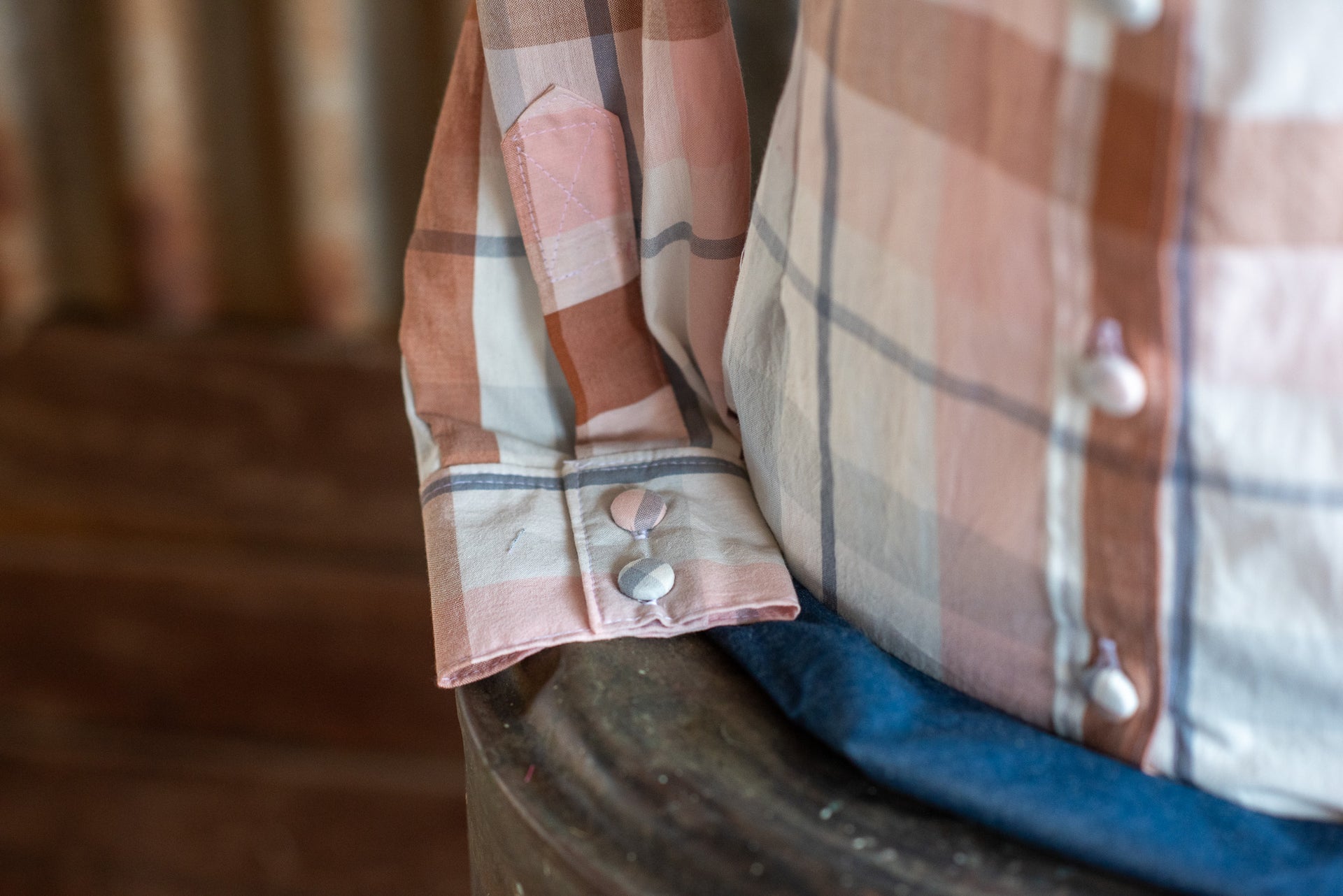 Handmade in Central Qld, Australia. Made with fit & functionality in mind - with extra length through the torso & arms. With darts in the torso & bust for a lovely tailored look & feel. Western style arena shirts available for custom order. Finished with fabric covered buttons.