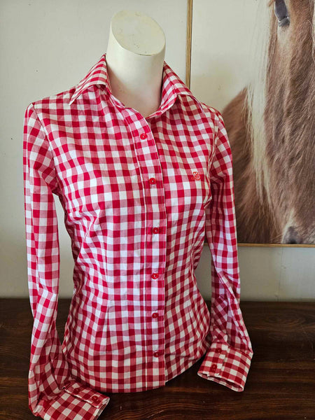 PLEASE BE AWARE THESE ARE CUSTOM MADE TO ORDER - ALLOW UP TO 4 WEEKS FOR THEM TO BE MADE Handmade in Central Qld, Australia. Made with fit & functionality in mind - with extra length through the torso & arms. With darts in the torso & bust for a lovely tailored look & feel. Western style arena shirts available for custom order.  All shirts are...View more