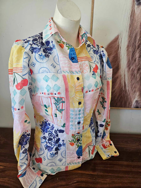 PLEASE BE AWARE THESE ARE CUSTOM MADE TO ORDER - ALLOW UP TO 4 WEEKS FOR THEM TO BE MADE Handmade in Central Qld, Australia. Made with fit & functionality in mind - with extra length through the torso & arms. With darts in the torso & bust for a lovely tailored look & feel. Western style arena shirts available for custom order.  All shirts are...View more